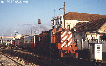Darren Walker reported: During the Summer months 99 the remaining RSC-3 have settled down on their passenger only diagrams, the common workings being the Inter-Regionals (infrequent appearences) and Regional services between the Algarve/Alentejo to Barreiro, they are also common performers on the Suburban trains out of Barreiro to Setubal and Praias-Sado.