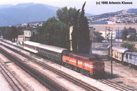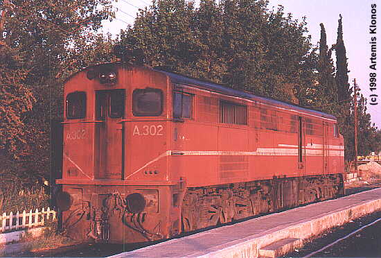 A-302 leaves Plati with train 725 to Kozani, March 14th, 1998.