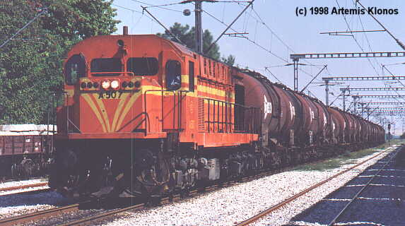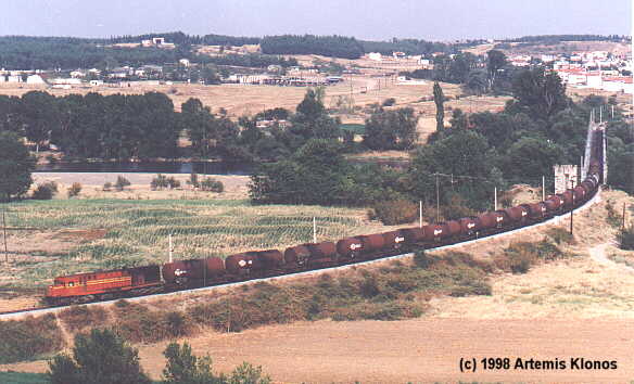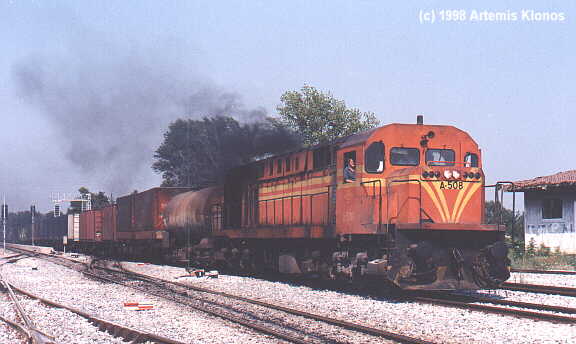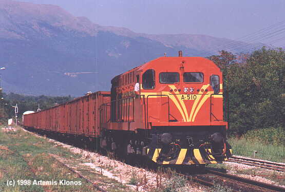 | Spotless A-510 rumbles through Mouries on the Alexandroupolis line,
