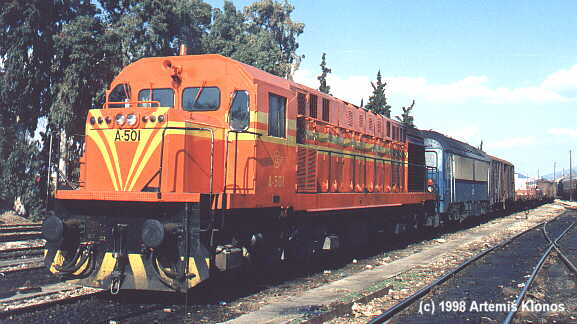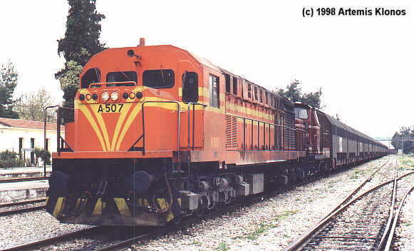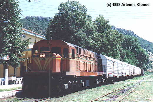 | A-503 with freight no. 80721 at Agras on the Kozani line, July 11th, 1998.