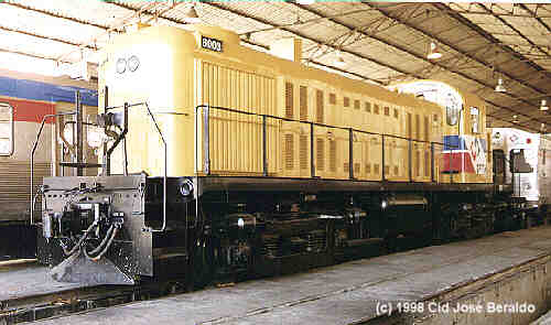 The unit shown below was completely refurbished by MPE, a remanufacturer from Rio de Janeiro, retaining its original ALCO prime mover, contrary to the nine units working for Flumitrens in Rio, which were rebuilt by GEVISA, replacing the ALCO engine by the GE FDL7. Remanufacturer CCC of Cruzeiro (SP) is also rebuilding four units and it is hoped that CPTM will receive units from the two companies.