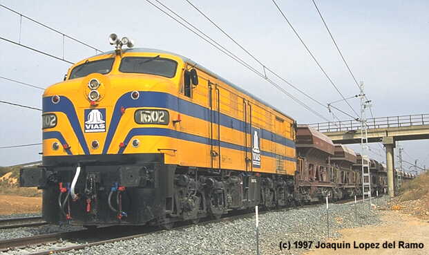 VIAS 1602 with a ballast train near Hoya-Gonzal (AB),