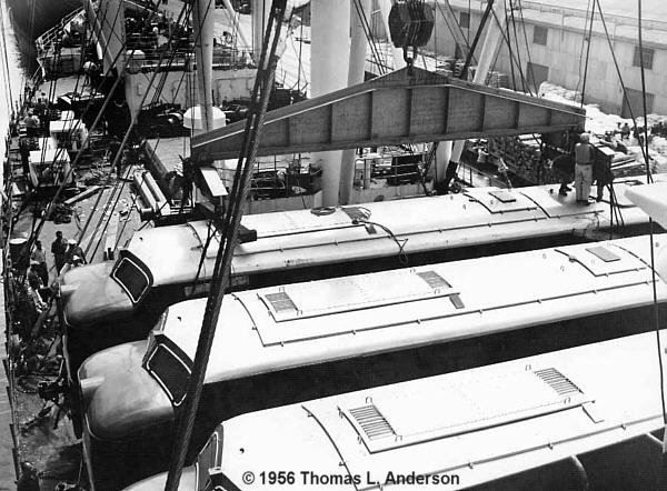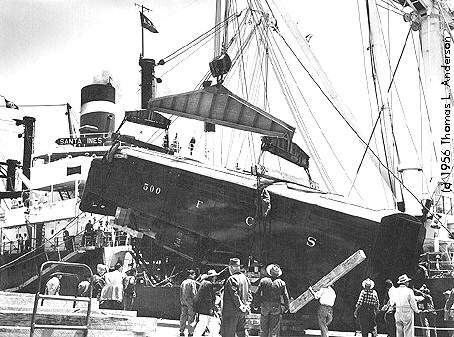 Unit #500 is being unloaded from the "Santa Ines" at Matarani port. The steam ship could hold three units on the deck, trucks were separate from the units.