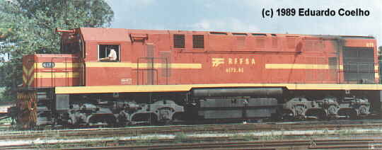 Both pictures above show first generation ALCos in Brazil. They were former state railway (RFFSA) units and were rostered at the Cia. Bras. de Trens Urbanos (CBTU) as of 1990. This company is now called "Flumitrens". Both units were since retired.