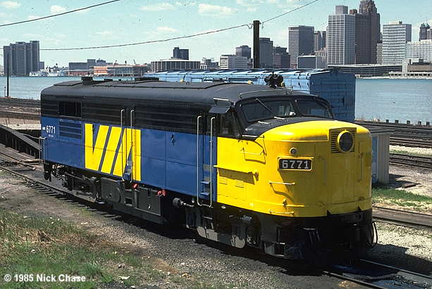 passenger network. 6771 basks in the sun at Windsor, Ont., 1985. The unit is now Cuyahoga Valley Scenic RR no. 15 and operating from Independence, Ohio. Nick Chase photo |
