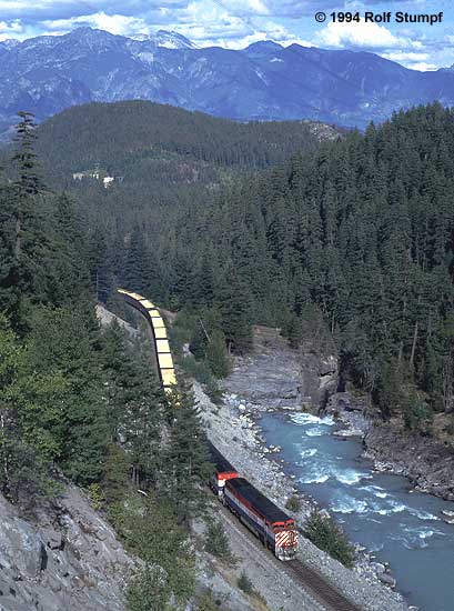 in a full-width body. Two BC Rail DASH8's (4602 leading)and a SD-40 (747) bring